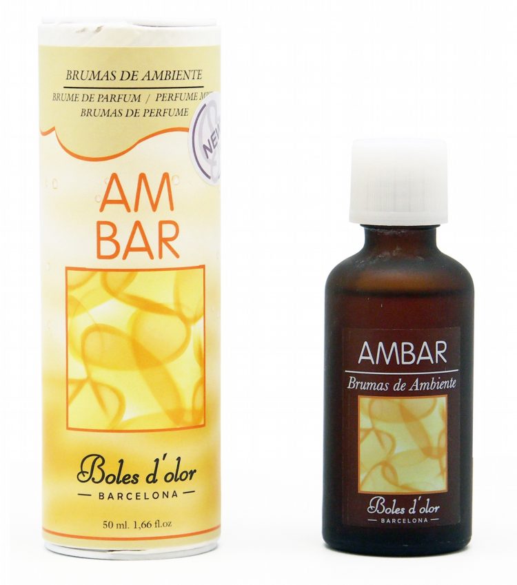 Geurolie Brumas de Ambiente – Amber. De geur van amber. Een kruidige warme geur. De Boles d’olor geurolie is bijvoorbeeld te gebruiken voor de Aroma diffusers (3 – 5 druppels per keer). De geurolie is zeer geconcentreerd. Het flesje bevat 50ml olie en is verpakt in een mooie koker.