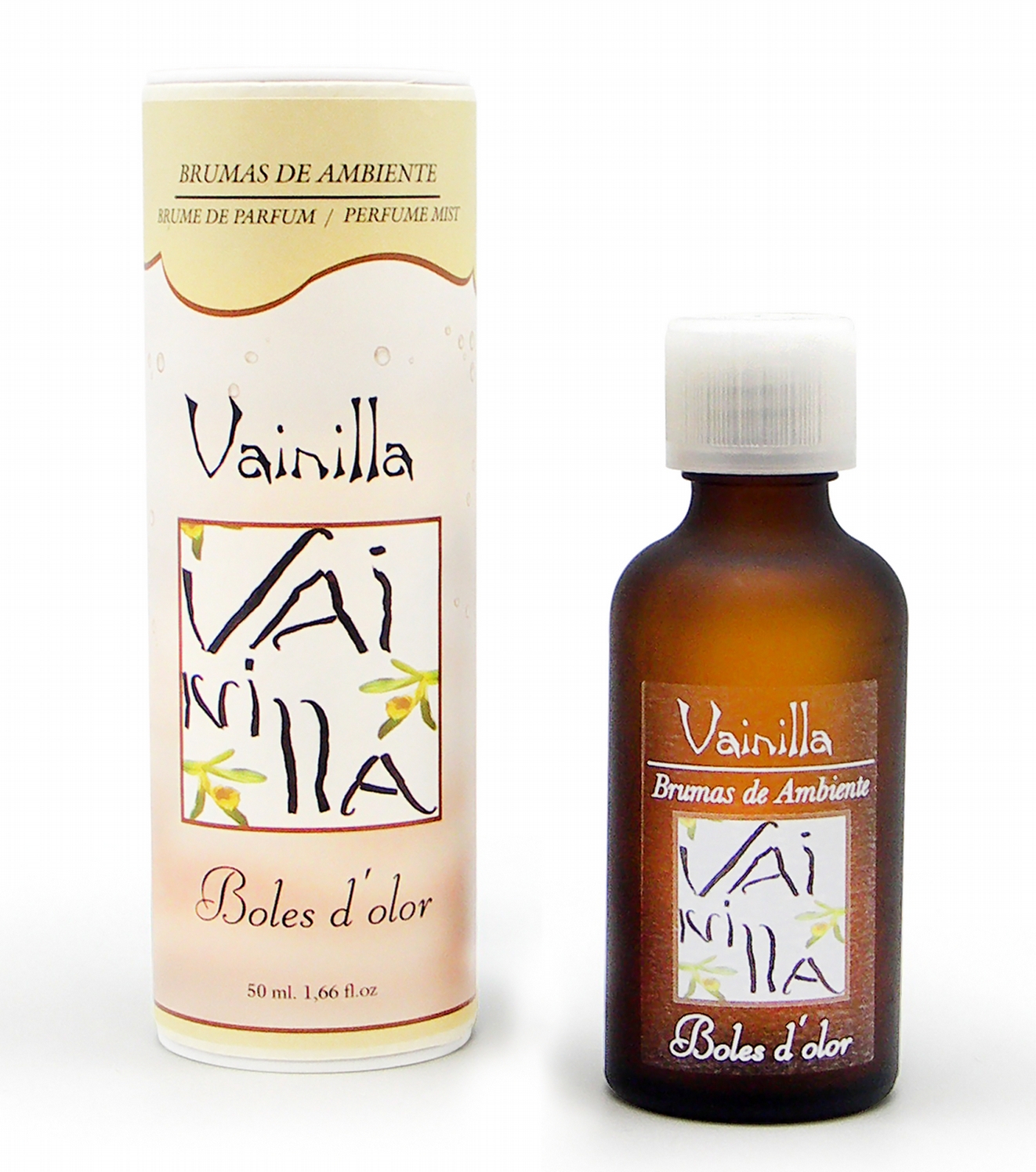 Geurolie Brumas de Ambiente – Vainilla – Vanille. Rijke en traditionele vanillebloemengeur met hazelnoot- en macadamianoothints en een zachte achtergrond van gebrande suiker. De Boles d’olor geurolie is bijvoorbeeld te gebruiken voor de Aroma diffusers (3 – 5 druppels per keer). De geurolie is zeer geconcentreerd. Het flesje bevat 50ml olie en is verpakt in een mooie koker.