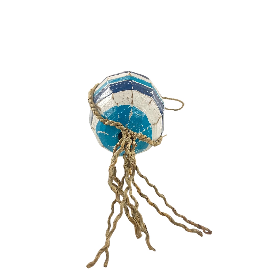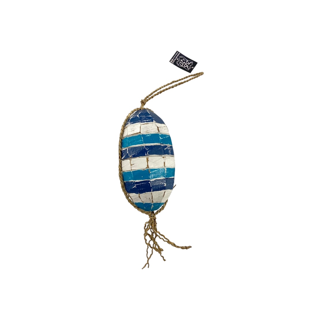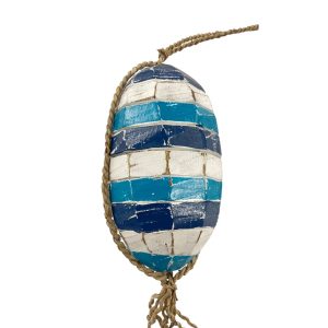 Deze handgemaakte houten boei in multiblauw brengt direct een zomerse, maritieme sfeer in huis.