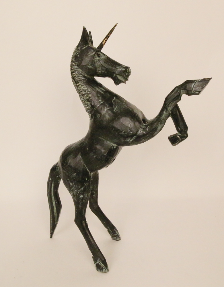 Prachtig uit hout gesneden eenhoorn (antique green look) uit hout gesneden.