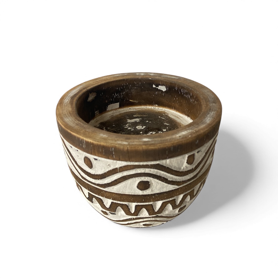 Houten vaasje/kommetje 13×10 Wit/Bruin