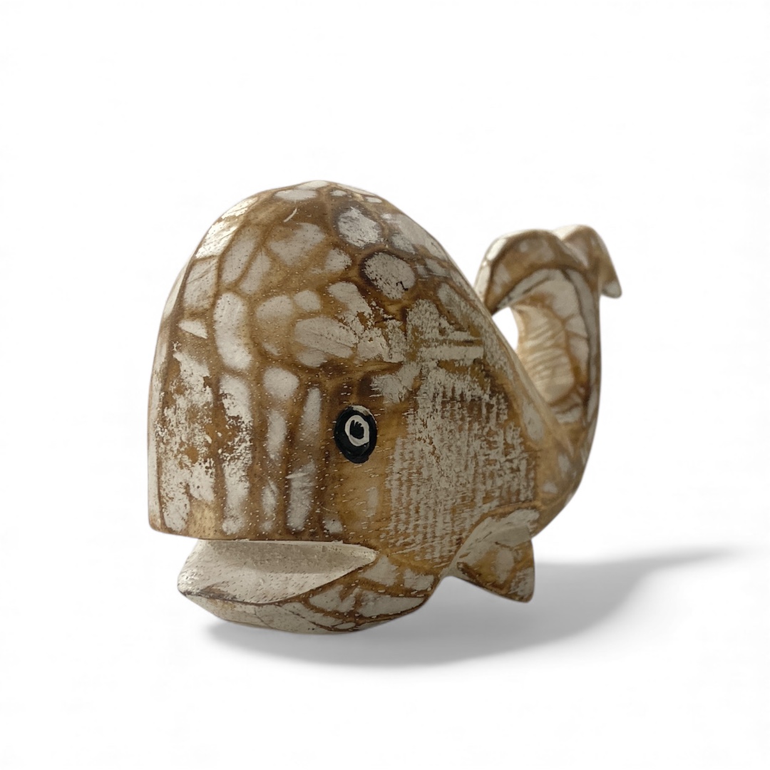 Decoratieve houten walvis Moby Dick in middelgroot formaat (Maat M) van ca. 17 x 8?cm. Dit handgemaakte beeldje brengt een speels en stijlvol maritiem accent in je interieur. Perfect voor op een plank, dressoir of vensterbank en prachtig te combineren met andere nautische of beach-accessoires voor een harmonieuze en sfeervolle uitstraling.