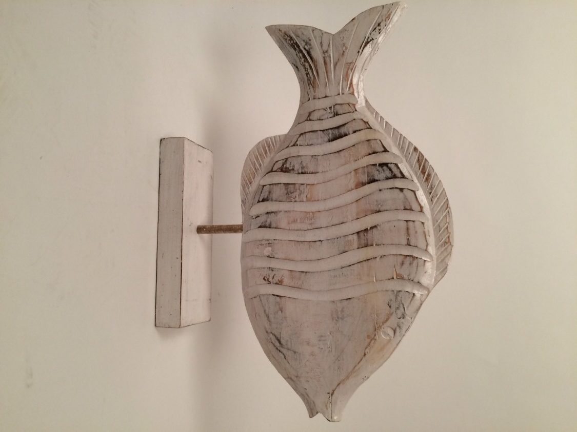 Houten lichtgewicht witte vissen op voet, handgemaakt in Azië.