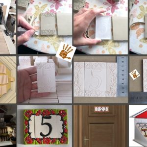 Huisnummer roses. Keramische huisnummertegel bestaande uit 1 cijfer of 1 letter. De tegels zijn handgemaakt van klei en zodanig op hoge temperatuur gebakken om volledig water- en vorstbestendig te zijn. Elke keramisch cijfer of letter heeft een grootte van ca. 4,5 x 7.5cm. Elke zijkantje is ca. 2.2 x 7.5 cm. De nummers kunnen eenvoudig met montagekit of sikaflex geplakt worden op hout, steen etc. Voor direct aan de muur kunt u tegellijm of cement voor tegels gebruiken.
