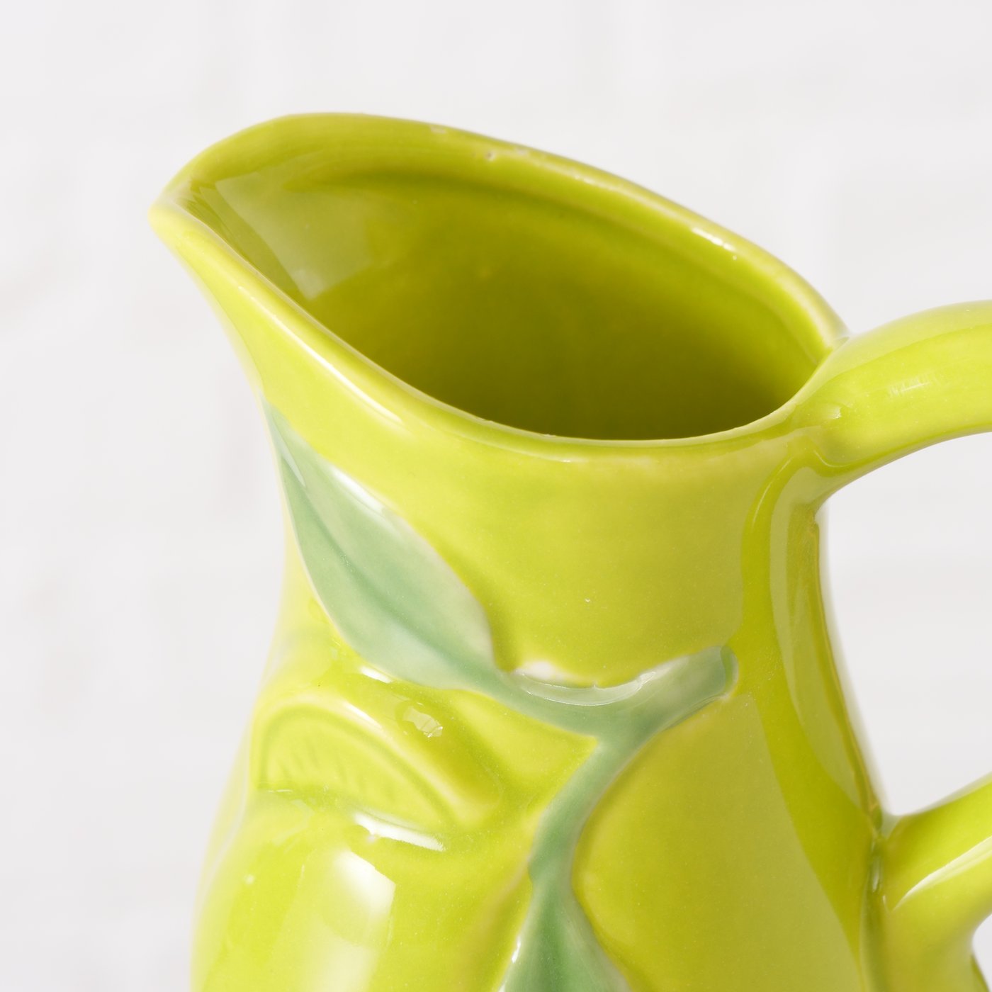 Breng een frisse, kleurrijke touch in huis met dit kannetje in limoen ontwerp. Het handgemaakte ontwerp, de glanzende afwerking en het speelse motief zorgen meteen voor een vrolijke sfeer. Ideaal als kleine kan, decoratief item of mini-vaasje.
