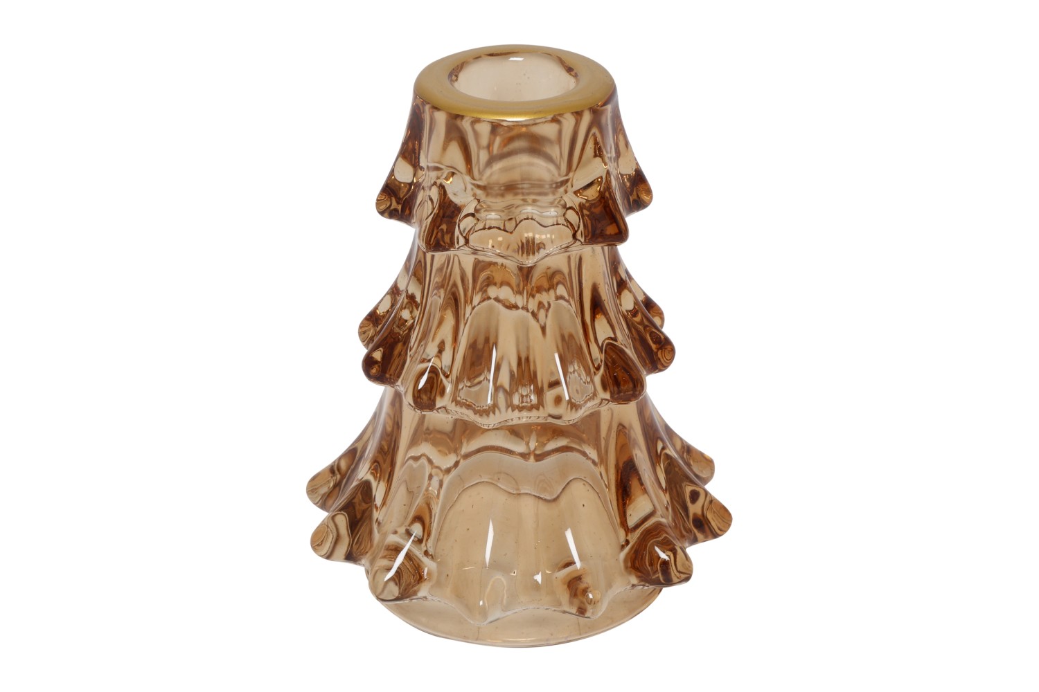 Laat je interieur stralen met deze prachtige denneboomkandelaar van glas. De verfijnde vorm van een dennenboom en het glanzende glas zorgen samen voor een stijlvolle en feestelijke uitstraling. Wanneer je er een kaars in plaatst, verspreidt het glas een zachte, warme gloed die elke ruimte een gezellige wintersfeer geeft.