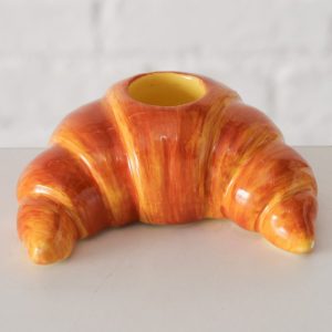 De kandelaar Croissant is een originele en speelse toevoeging aan je interieur. De realistische vorm en warme bruintinten geven het ontwerp een ambachtelijke en gezellige uitstraling. Perfect voor op de eettafel, in de keuken of als decoratief accent op een plank of dressoir.