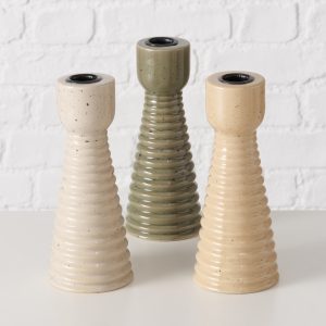 Stijlvolle eenvoud – Kegelvormige kaarsenhouder in crème, beige en olijfgroen ???