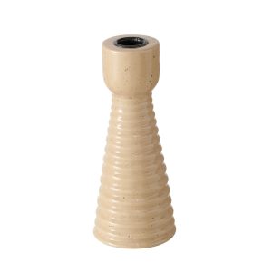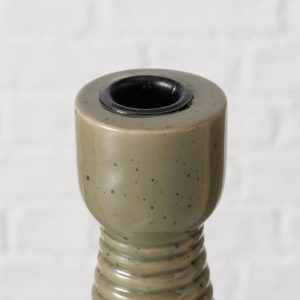 Breng warmte en karakter in je interieur met deze elegante kaarsenhouder in kegelvorm. Gemaakt van porselein in drie tijdloze kleuren – crème, beige en olijfgroen – past hij moeiteloos in elk interieur, van modern tot rustiek.