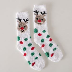 De sokken zijn uitgevoerd in vrolijke rood-groen-witte kleuren met een lief hertmotief en speelse stipjes. Gemaakt van fluffy, warme stof – ideaal voor knusse winterdagen op de bank.