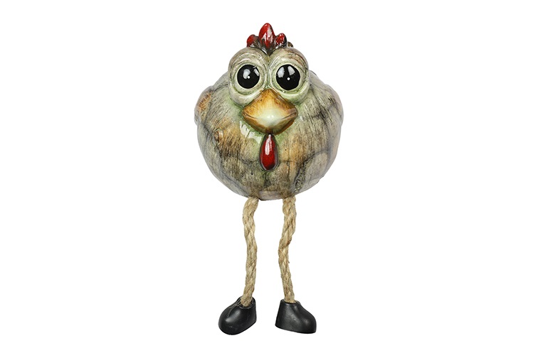 Met een formaat van ca. 9,5 × 10,5 × 10,5 cm is deze decoratieve kip perfect voor plaatsing op een dressoir, vensterbank, wandplank of in een open kast. De bungelbenen zorgen voor een extra speels effect wanneer u het beeld op de rand van een plank of tafel zet.