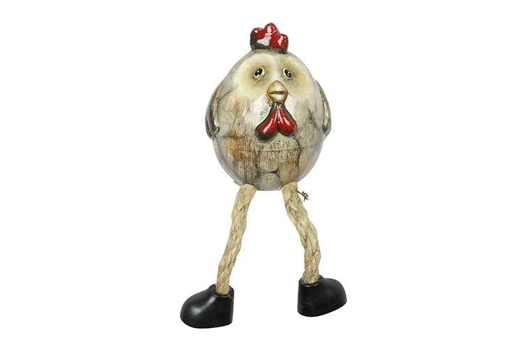 Beeld Kip Tim S is een klein en speels decoratiebeeld met een vrolijke uitstraling. De ronde vorm, bungelende touwbenen en zachte grijs-bruine tinten geven deze kip een charmant en vriendelijk karakter. De subtiele details in de kam en snavel zorgen voor een levendig accent.