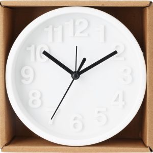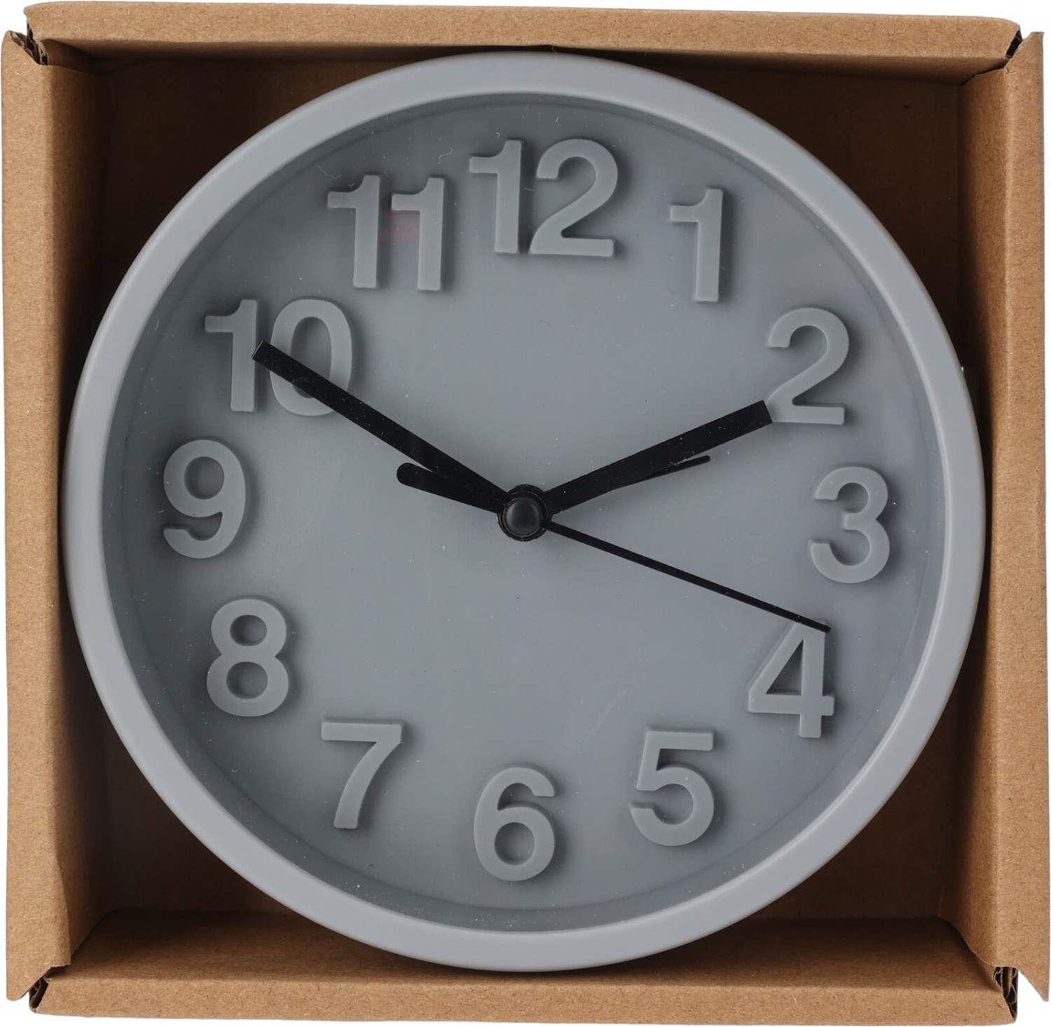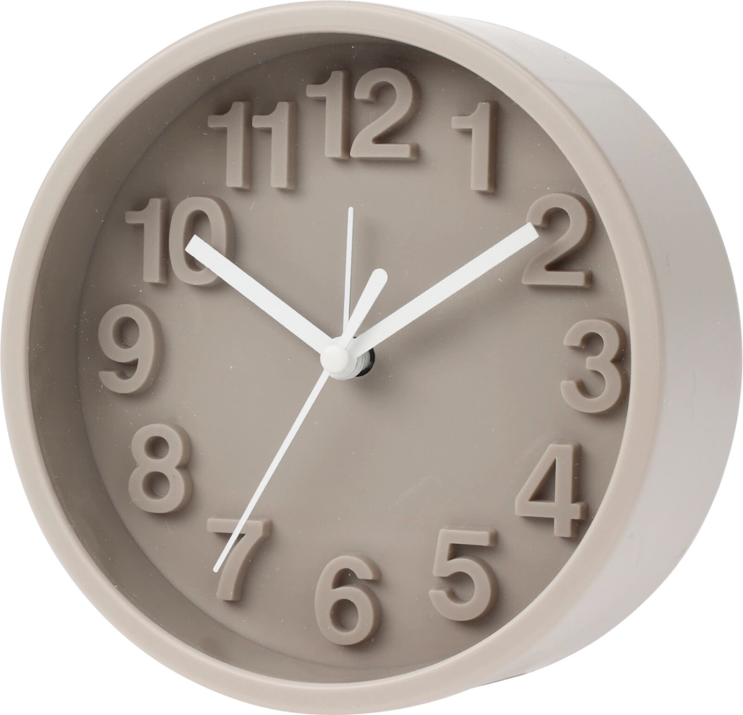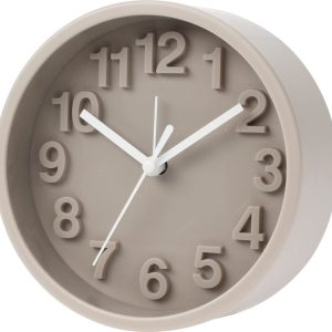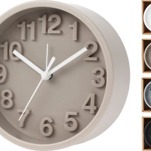 De klok werkt op batterijen (niet inbegrepen) en is verkrijgbaar in meerdere kleuren, waaronder zwart, wit, grijs en taupe.