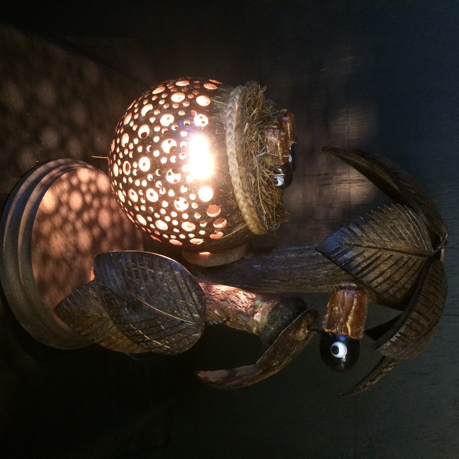 Deze dierenlamp siert toch iedere kamer? De lamp is van hout en kokosnoot met de hand gemaakt, dus iedere lamp is uniek. Ze geven een bijzonder mooi lichteffect in je kamer door de bewerkte kokosnoot.
