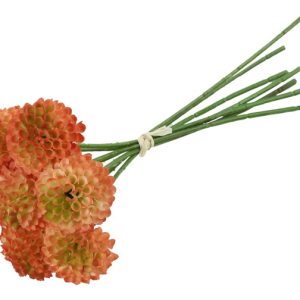Dit kunst boeket Dahlia in oranje heeft een compacte en volle uitstraling en is natuurgetrouw vormgegeven. De warme oranje tint geeft het boeket een levendig en sfeervol accent, terwijl de zachte bloemblaadjes zorgen voor een realistische en verfijnde uitstraling.