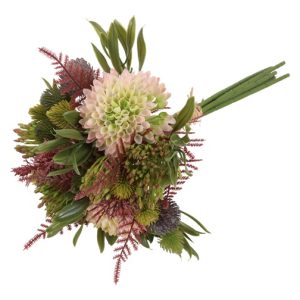 Dit kunst boeket Dhalia mix heeft een volle en elegante uitstraling en bestaat uit meerdere dahlia’s met zijdezachte bloemblaadjes. De bloemen en stelen zijn natuurgetrouw vormgegeven, waardoor het boeket nauwelijks van echte bloemen te onderscheiden is en een frisse, luxe sfeer toevoegt aan het interieur.