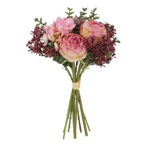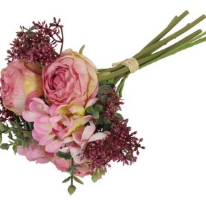 Dit kunst boeket Rosa heeft een compacte, volle uitstraling. De bloemen zijn uitgevoerd in een zachte roze tint en hebben een realistische afwerking, waardoor ze nauwelijks van echte bloemen te onderscheiden zijn. Door de natuurlijke vorm en het subtiele kleurgebruik oogt het boeket rustig en stijlvol.