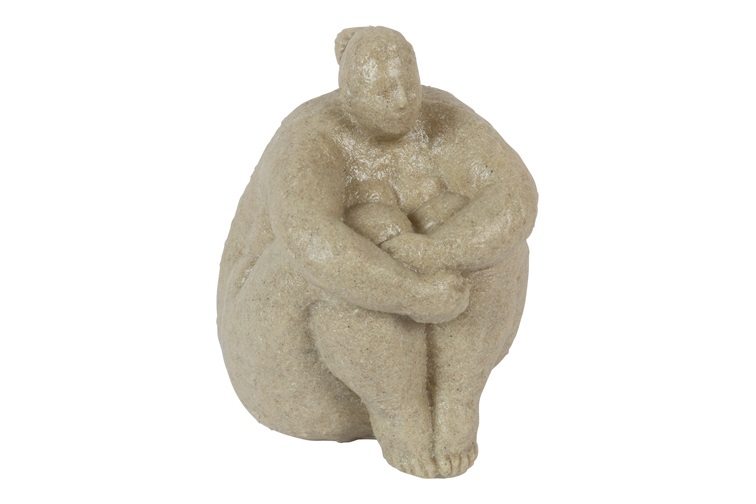 Lady zittend Rubeus in grijs is een stijlvol decoratiebeeld met een rustige en ingetogen uitstraling. De zittende houding met de armen om de knieën straalt kalmte en reflectie uit. De zachte, afgeronde vormen en neutrale grijstint zorgen ervoor dat dit beeld moeiteloos past binnen een modern, Scandinavisch of natuurlijk interieur.