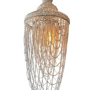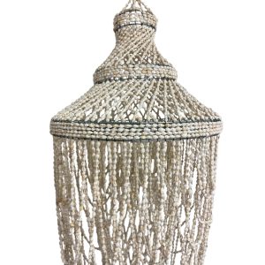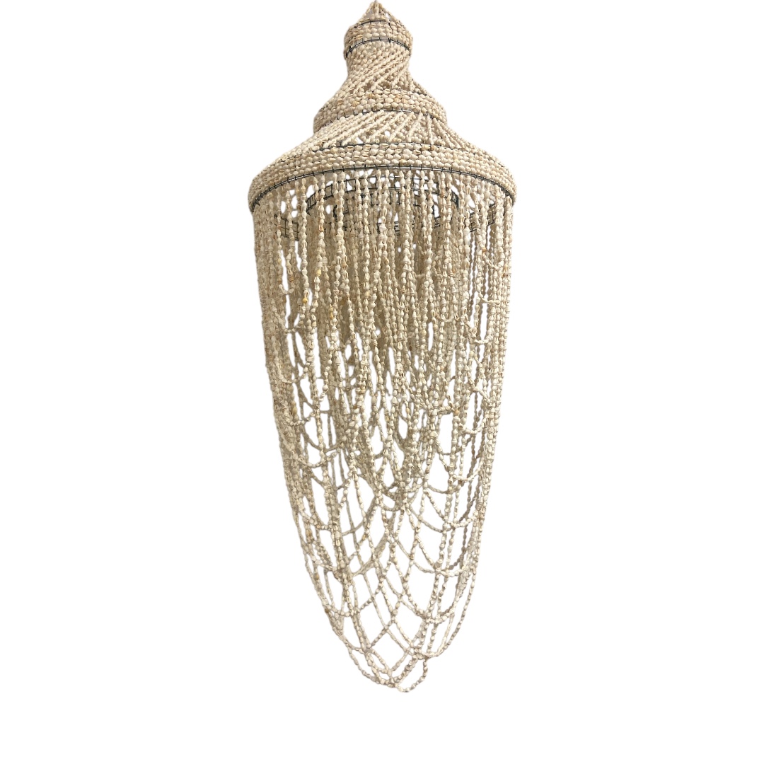 Lampenkap Lizzy is een handgemaakte lampenkap van schelpen met een diameter van ca. 40 cm en een totale lengte van ca. 115 cm. Het ontwerp bestaat uit fijn geregen schelpen die samen een elegant en natuurlijk geheel vormen. De zachte, neutrale uitstraling maakt deze lampenkap eenvoudig te combineren met verschillende interieurstijlen, zoals bohemian, beach of naturel wonen.