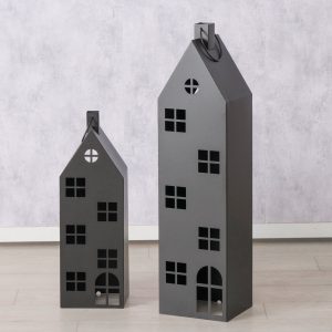 Maak je kerstdecor extra bijzonder met dit lantaarn huisje van strak zwart metaal. Met zijn minimalistische vorm, leuke doorkijkraampjes en deurtjes brengt dit huisje de perfecte mix van modern design en gezellige kerstsfeer.