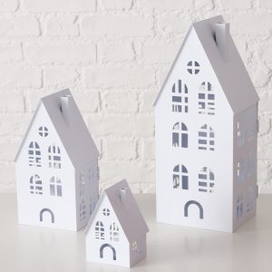 Breng de charme van een verlicht straatje in huis met deze leuke metalen witte huisjes. Voorzien van doorkijkraampjes en een klein deurtje roepen ze meteen de sfeer op van een knus kersttafereel, waar de ramen warm gloeien en kerstlampjes de straat verlichten.