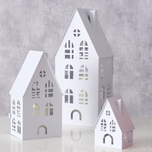 Breng de charme van een verlicht straatje in huis met deze leuke metalen witte huisjes. Voorzien van doorkijkraampjes en een klein deurtje roepen ze meteen de sfeer op van een knus kersttafereel, waar de ramen warm gloeien en kerstlampjes de straat verlichten.