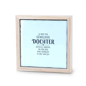 Een tegeltje uit deze ‘Liefs in een Lijstje’-collectie is een uniek cadeautje om te geven én te krijgen. Handig om op te hangen en om neer te zetten. Waar je maar wilt.