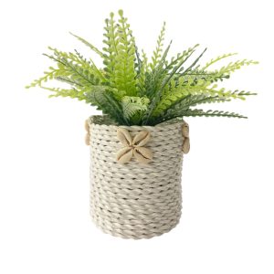 Het mandje is ideaal voor kleine planten, decoratieve accessoires of om kleine items in op te bergen. Door het compacte formaat past het perfect op een plank, vensterbank, kast of dressoir en voegt het op een rustige manier sfeer toe aan het interieur.