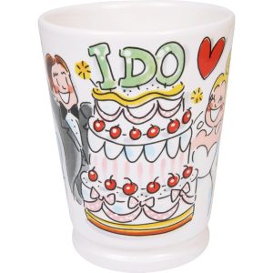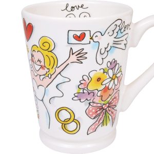 Say yes to koffie, liefde én gezelligheid. Deze Blond Amsterdam Mazagran van 0,5 liter is hét perfecte cadeau voor een huwelijk, verloving of jubileum. De vrolijke illustraties vol ringen, bloemen en taartmomenten maken elk koffiemoment een klein feestje. De royale beker is ideaal voor koffie, thee, ijskoffie of andere favoriete drankjes. Dankzij het grote formaat geniet je extra lang samen.