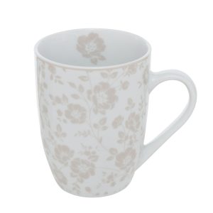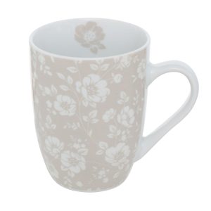 Mok Herta is een stijlvolle keramieken mok met subtiele beige/witte bloemenprint. Dankzij het comfortabele handvat en een inhoud van 330 ml is deze mok ideaal voor koffie, thee of warme chocolade. De neutrale kleuren maken hem een perfect keukenaccessoire voor elke interieurstijl.