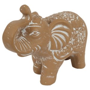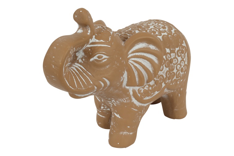 Dit decoratieve olifantenbeeld in warme bruine tint brengt een natuurlijke en sfeervolle uitstraling in uw interieur. Het speelse ontwerp met verfijnde details maakt dit beeld een charmante blikvanger in elke ruimte.