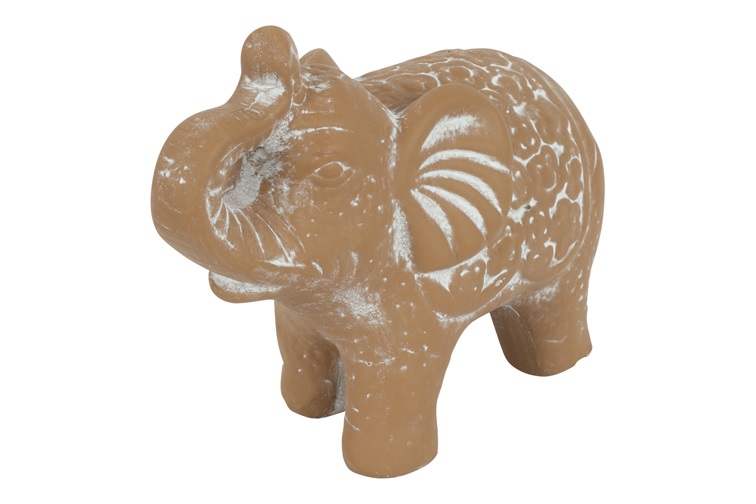 Deze decoratieve olifant in maat S is een sfeervolle toevoeging aan uw interieur. Het beeldje is uitgevoerd in een warme bruine kleur en afgewerkt met subtiele witte details, wat zorgt voor een speelse en karaktervolle uitstraling.