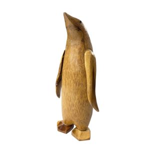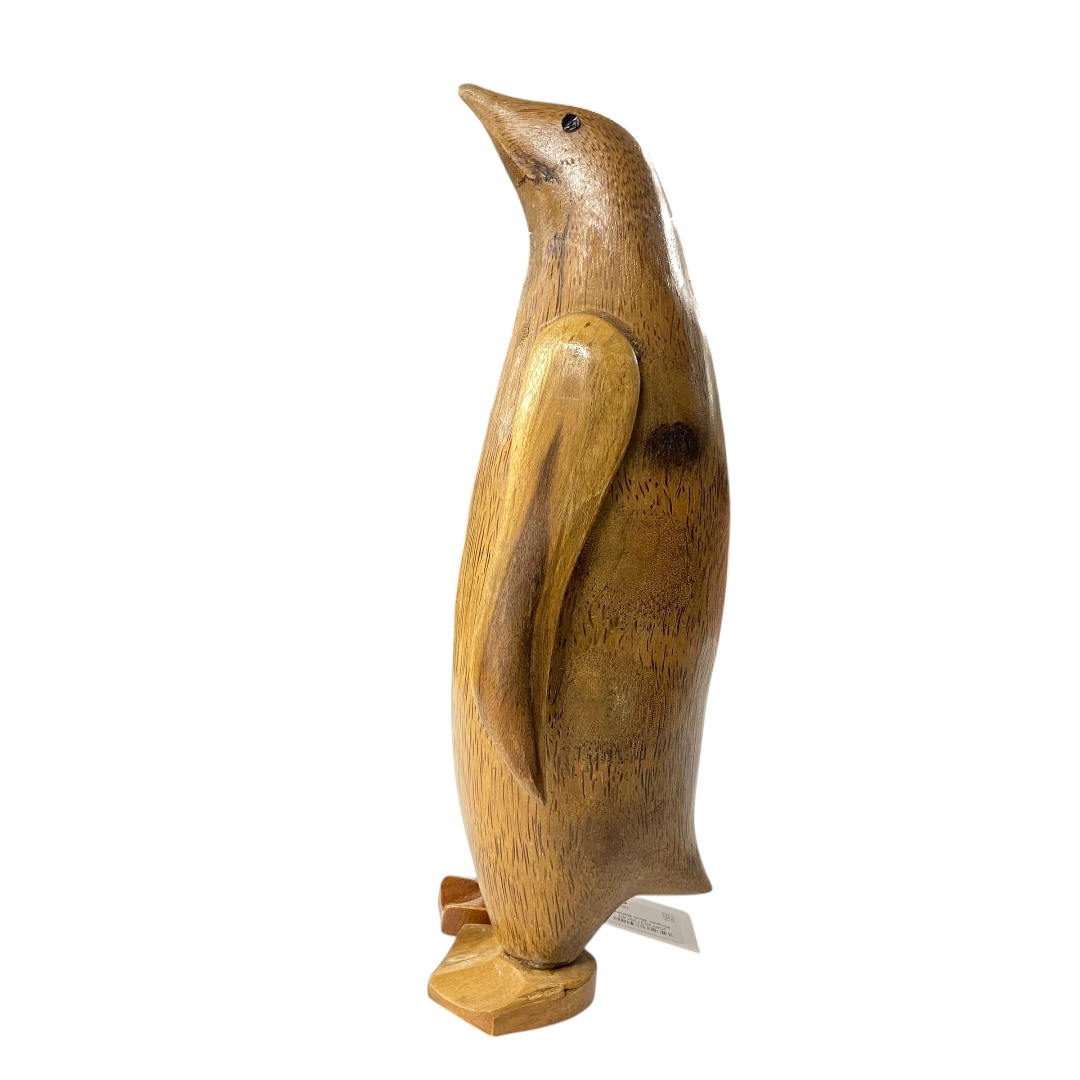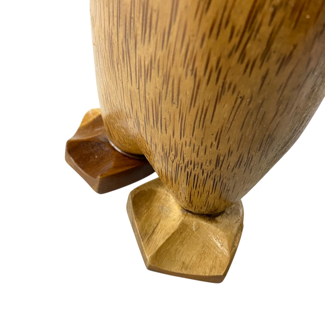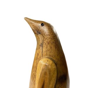 Deze grotere handgemaakte houten pinguïn “Naturel” straalt rust en ambachtelijke elegantie uit.