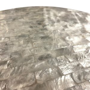 De placemat is met de hand gemaakt van capiz schelpen, een natuurlijk materiaal dat bekendstaat om zijn unieke glans en duurzaamheid.
