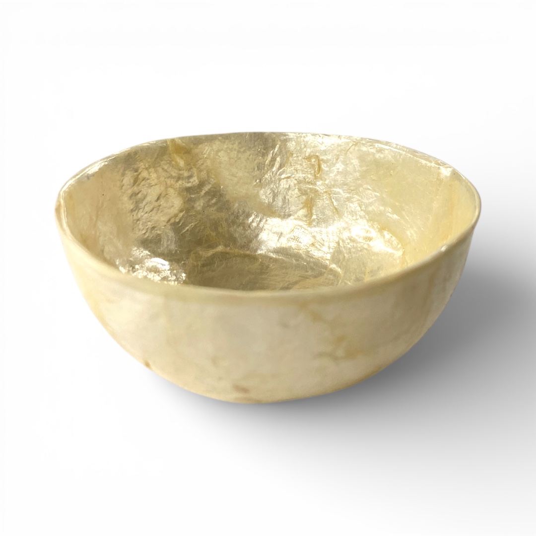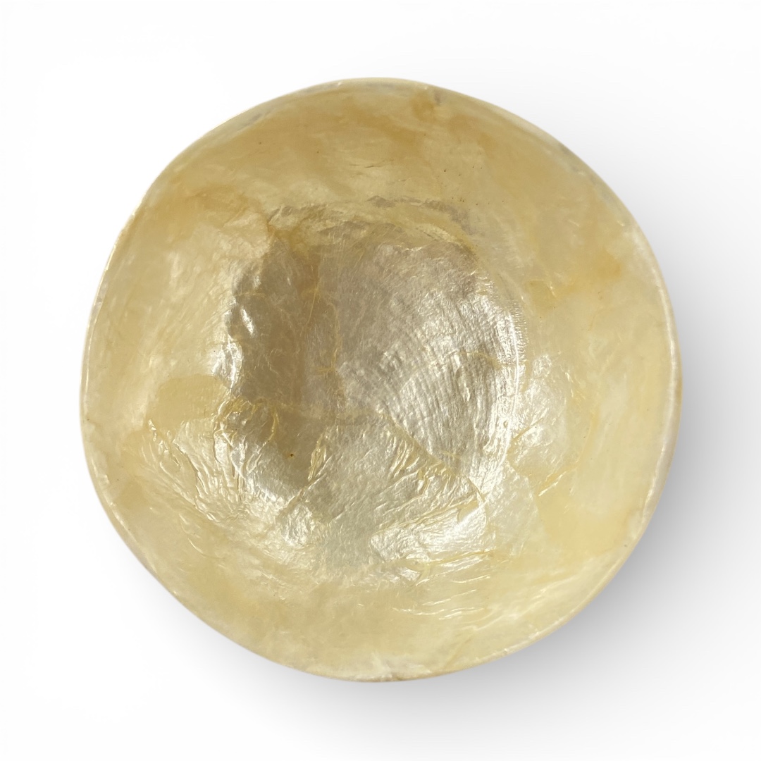 Dit ronde schaaltje heeft een diameter van ca. 8 cm en een hoogte van ca. 3 cm en is gemaakt van capiz schelp. De ronde vorm in combinatie met de natuurlijke glans van het capiz zorgt voor een rustige en verfijnde uitstraling. Door de iets hogere rand is het schaaltje praktisch en decoratief tegelijk.