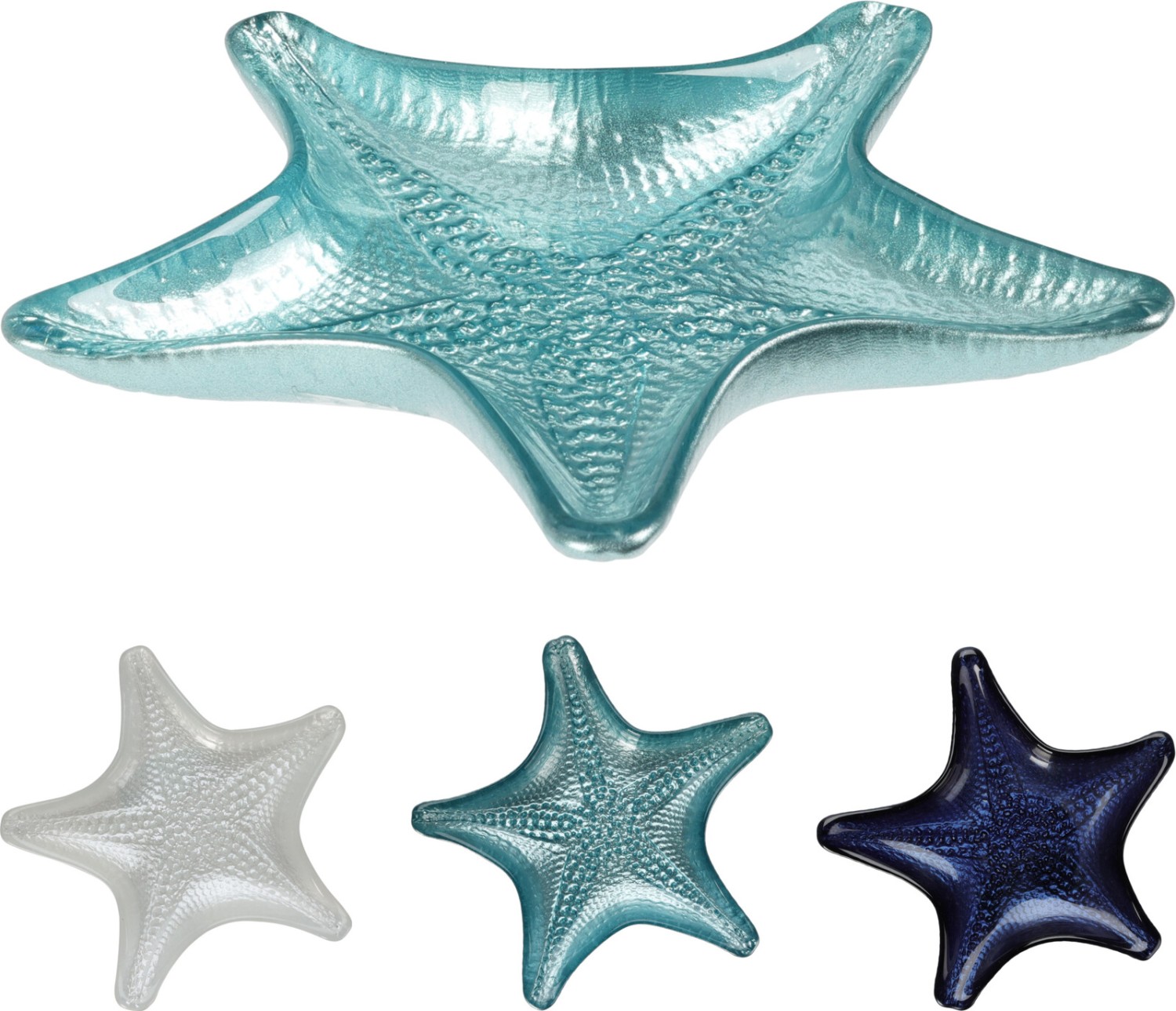 Breng de zee naar je tafel met deze prachtige glazen schaal in de vorm van een zeester. De schaal heeft een diameter van 16cm en is verkrijgbaar in verschillende kleuren, waardoor elk exemplaar een unieke uitstraling heeft. Perfect als decoratie, voor kleine hapjes of om sieraden en sleutels in te bewaren.