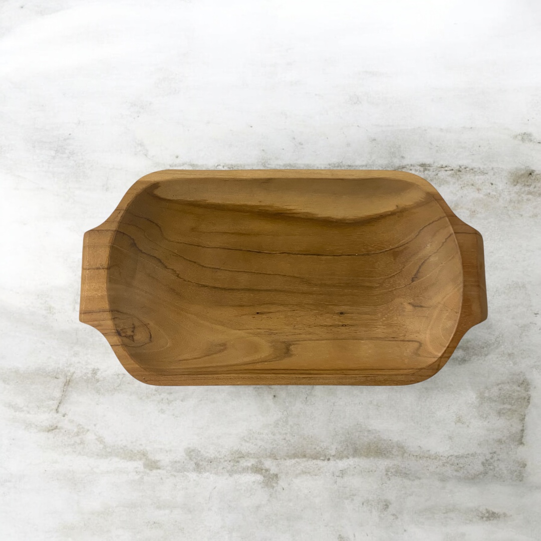 Houten schaal met twee handgrepen