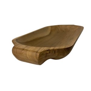 De natuurlijke houtkleur en organische, iets speelse vorm geven de schaal een warme en veelzijdige uitstraling die perfect past binnen zowel moderne als landelijke woonstijlen. De stevige handgrepen zorgen ervoor dat de schaal prettig vast te houden is.
