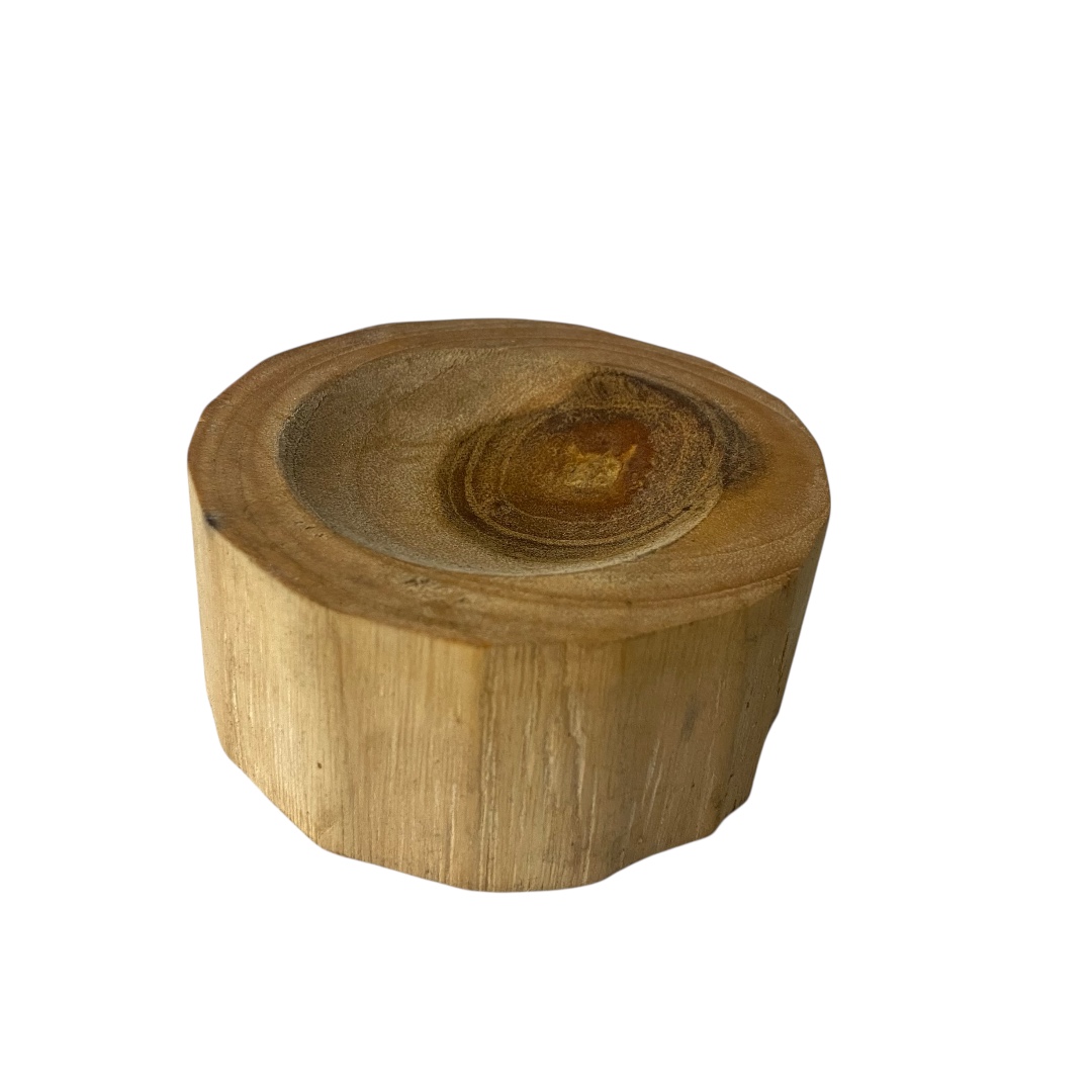 Dit houten schaaltje in blokvorm is een stoer en stijlvol woonaccessoire dat dankzij zijn robuuste uitstraling perfect past binnen zowel moderne als landelijke interieurs. Met zijn compacte formaat van ca. Ø 9 × H 4 cm is het ideaal voor het presenteren van een amberblokje, sieraden, of andere kleine items.