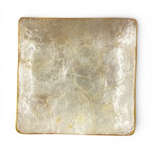 Dit vierkante schaaltje heeft een afmeting van ca. 10 x 10 x 2 cm en is gemaakt van capiz schelp. Het natuurlijke materiaal zorgt voor een zachte glans en een rustige uitstraling, terwijl de strakke vierkante vorm het schaaltje een tijdloos karakter geeft. Het compacte formaat maakt het geschikt voor het opbergen van kleine items zoals sieraden, sleutels of andere kleine accessoires.