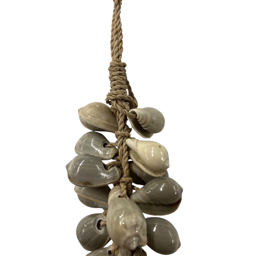 De hanger is met de hand gemaakt van echte schelpen, samengebonden met touw voor een rustieke, ambachtelijke look. Past prachtig binnen een strandhuis-, boho- of mediterrane interieurstijl.