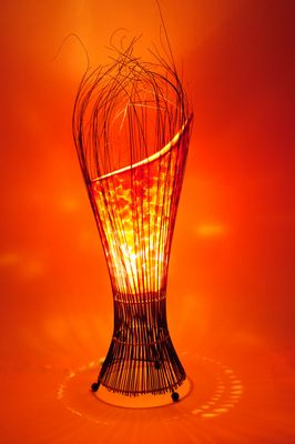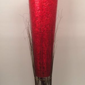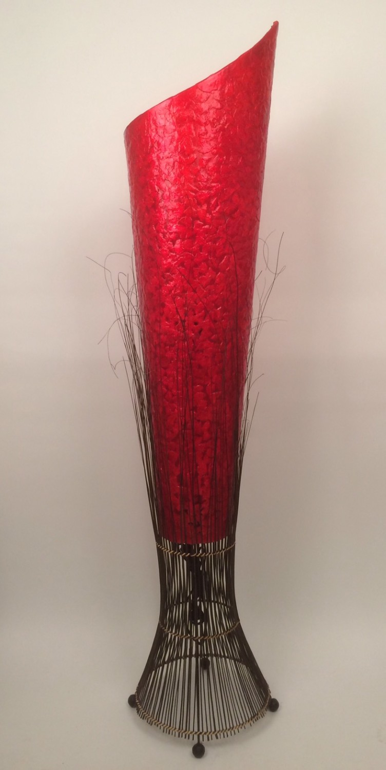 Sfeervolle rode schelpenlamp van rotan en resin, handgemaakt in Azië. Met kunsthars (resin) en rotan heeft een extravagante stijl. Een kunstwerk in uw living.