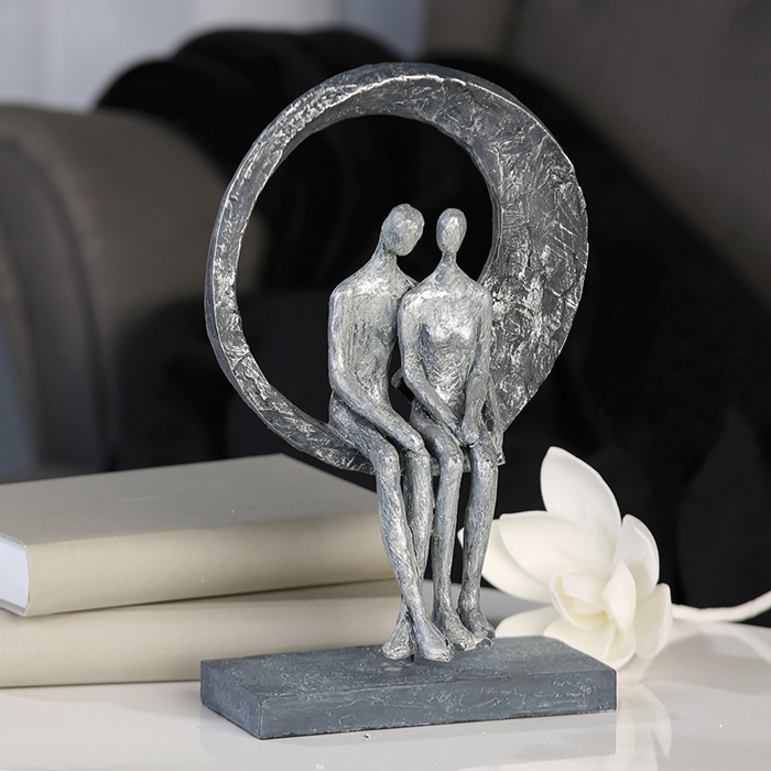 Modern beeld met een man en een vrouw zittend in een fraai gedraaide ring. Uit de serie “Karaktereigenschappen” van de Duitse firma Gilde. Het beeld staat symbool voor het geluk dat twee verliefde mensen kunnen voelen.