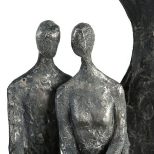 Geheel gemaakt van polyresin met een klein deel metaal. Uitgevoerd in mat zwart en antraciet, de man en de vrouw zijn in antiek zilver.