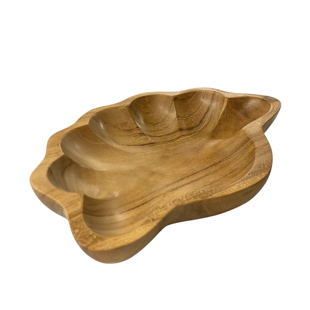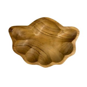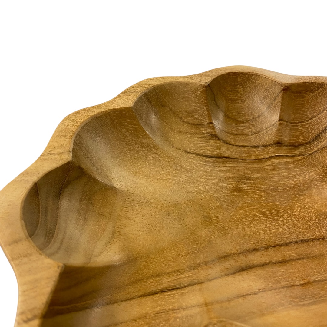 Dit teakhouten schaaltje is een ware blikvanger door zijn organische, golvende vorm en natuurlijke uitstraling.