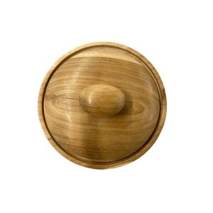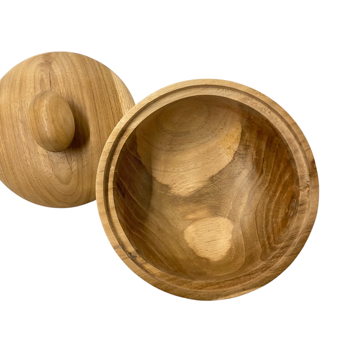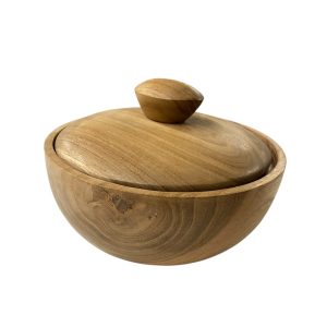 Dit handgemaakte teakhouten schaaltje met deksel is zowel praktisch als stijlvol.