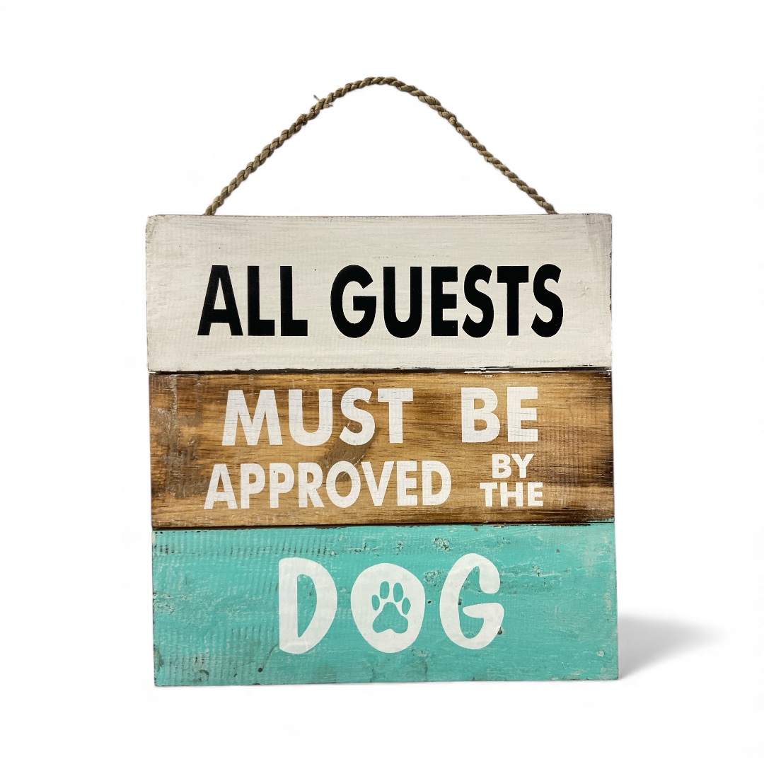 Tekstbord “All Guests Must Be Approved By The Dog”