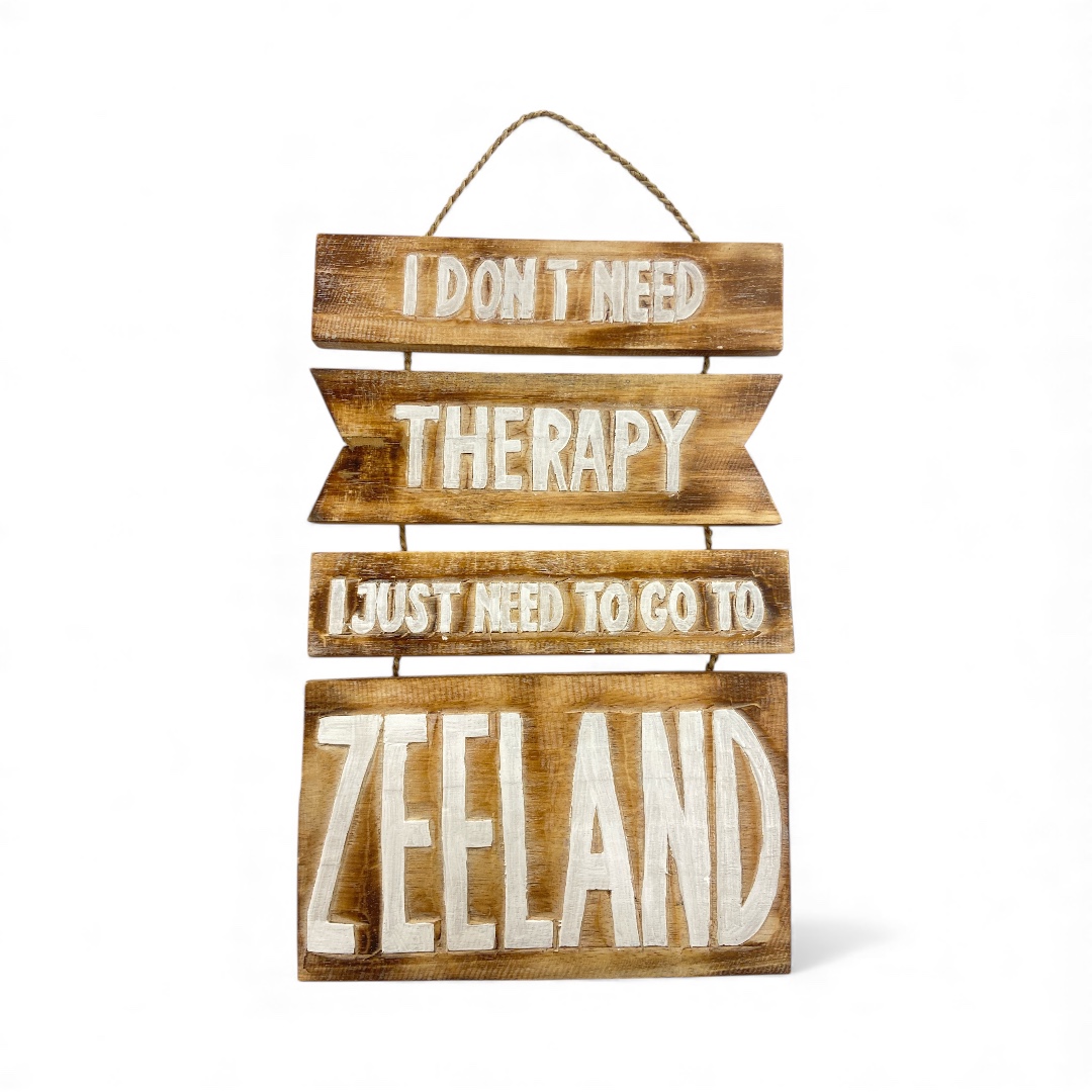 Tekstbord “I Don’t Need Therapy, I Just Need To Go To Zeeland” van ca. 47×30?cm in naturel hout. Dit handgemaakte bord brengt een vrolijke en persoonlijke touch in je interieur en is perfect voor liefhebbers van Zeeland of als sfeervol accent in de woonkamer, hal of keuken. De speelse en herkenbare tekst maakt het bord ook een leuk cadeau voor vrienden en familie die van zee, strand en ontspanning houden.