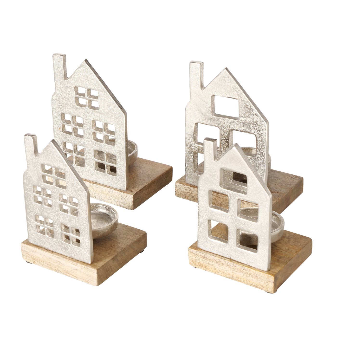 Theelicht houder Casy, 2 ass., huis, H 17cm, mangohout