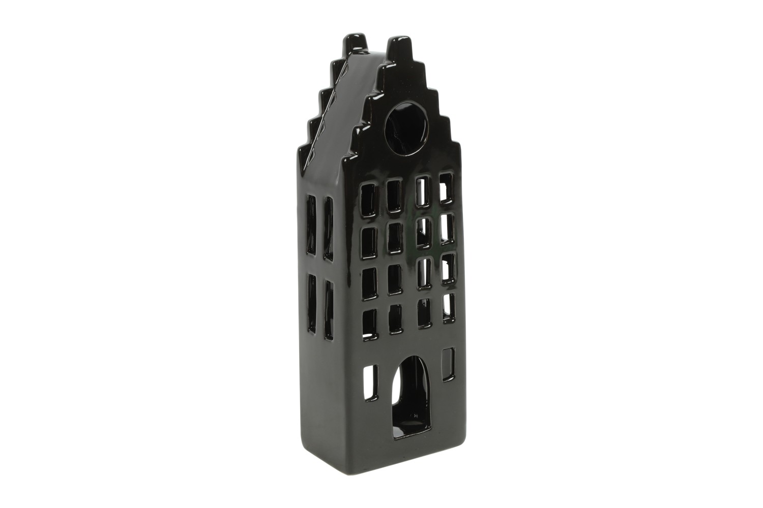 Tijd voor de winter met dit zwarte theelicht met huisje van steen. Dit verfijnde decoratieve stuk maakt elke ruimte klaar voor de winterse dagen en heeft een unieke vorm die het een opvallend pronkstuk maakt voor elke ruimte, of het nu op de vensterbank, op een kast of elders wordt geplaatst. Voeg dit prachtige decoratie stuk toe aan jouw kerstassortiment.